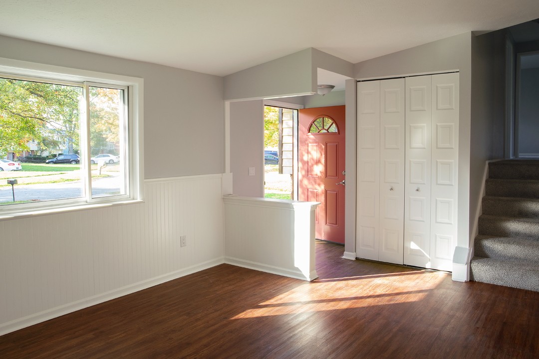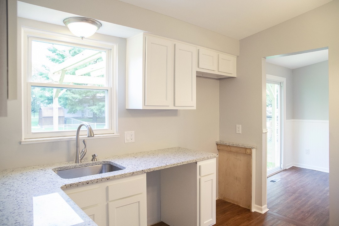 With the right kind of renovation, the Land Bank knew the house was a chance to grow home ownership in the neighborhood. The Land Bank team agreed to undertake a move-in ready renovation itself. From small problems to big upgrades, the whole house got the attention it deserved. A new roof, a new driveway, a new HVAC system, and completely updated plumbing were some of the larger items. New counter tops in the kitchen, new flooring throughout, and a decorative pergola to open up the backyard were also added. A repainted auburn front door welcomed visitors with a modesty that matched the quiet neighborhood.