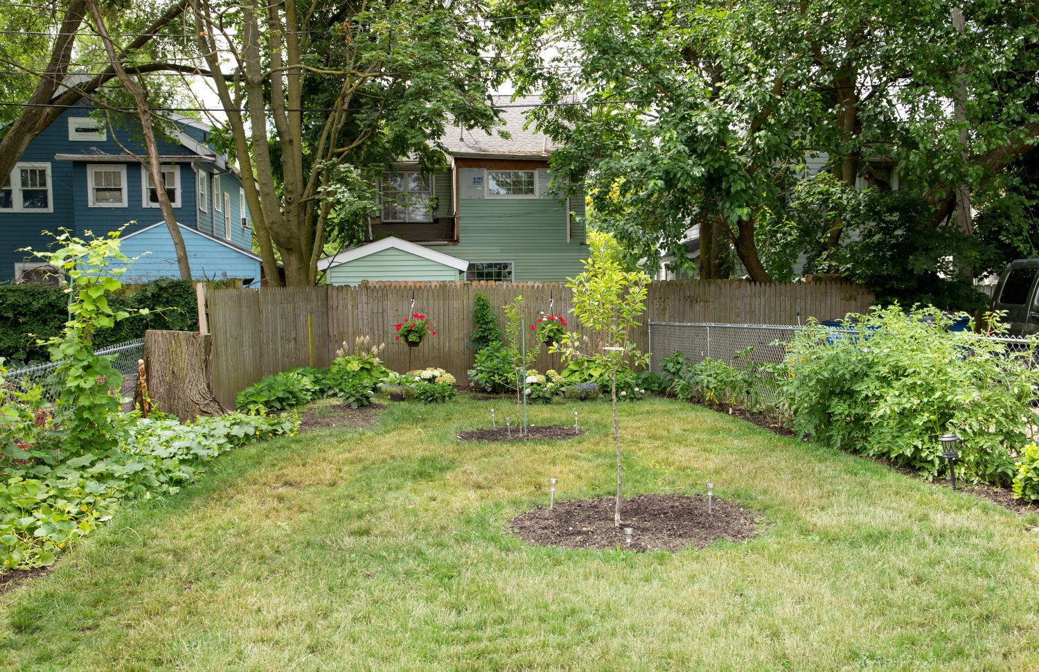 In 2018, the Land Bank stepped in. After taking control of the blighted home through tax foreclosure, it assessed its condition and confirmed that demolition was the only option. After the demolition was finished and a large dead maple tree was removed from the back yard in 2019, a whole new world opened up.