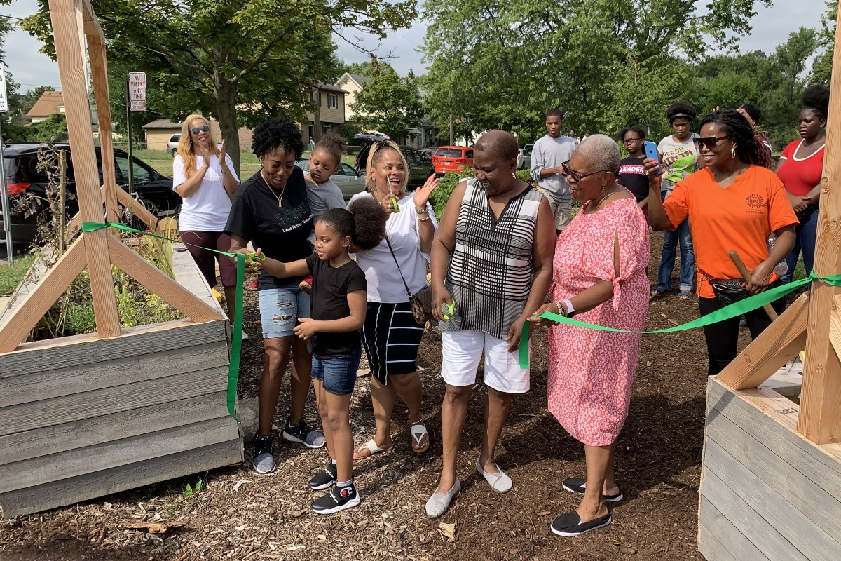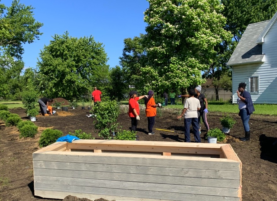 Thanks to the efforts of Sonia Organics and Bench Farms, land where an abandoned home sat rotting away is now a native garden, with herbs, pollinators, produce, and a gorgeous Village Green tree. In addition, new planters were built with the help of residents and supporters.