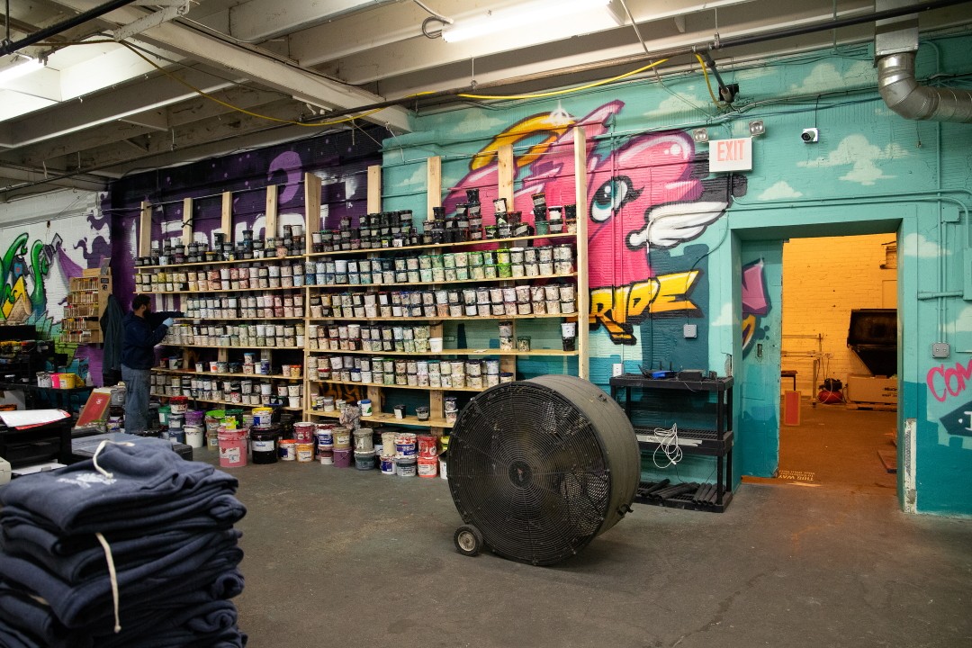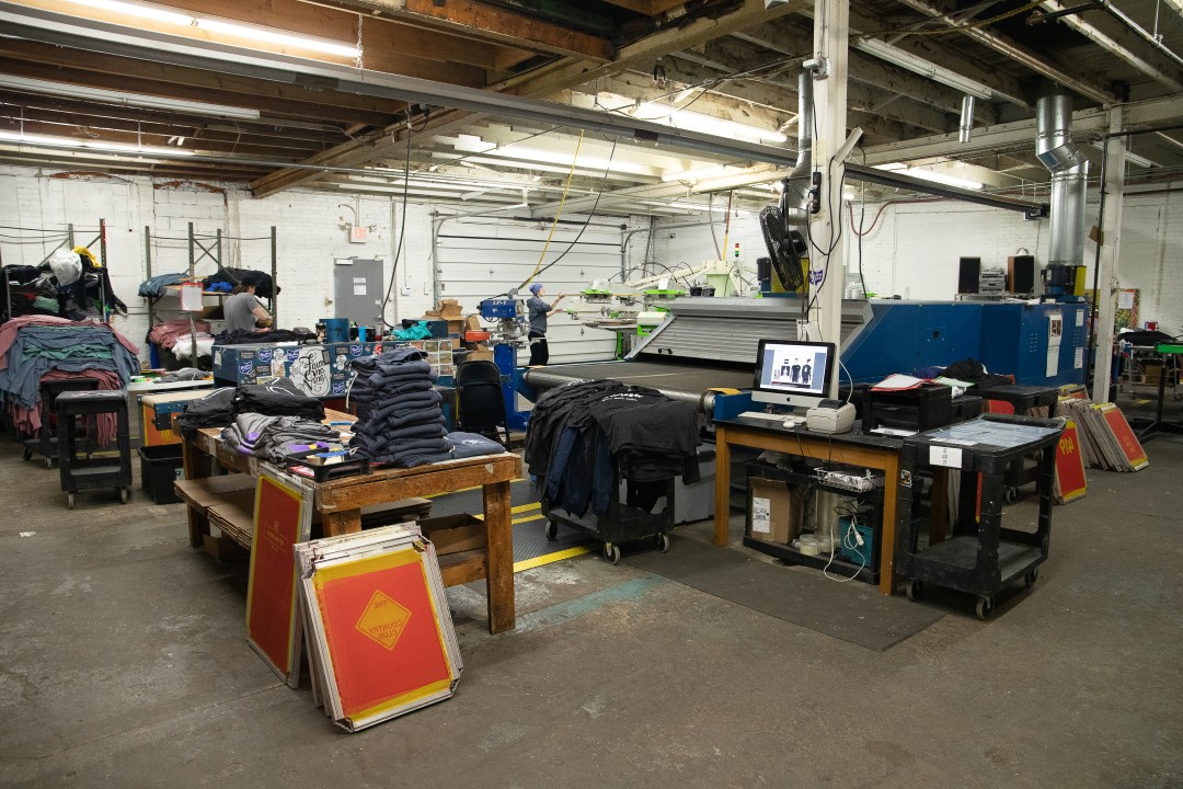 The company’s success has spurred additional expansion within the Adams Street building. While high demand keeps the screen presses running – production can peak at 600 shirts per hour – the space allows the company to make major capital equipment investments to keep up with demand. The large screen press with twelve printing stations is particularly impressive.